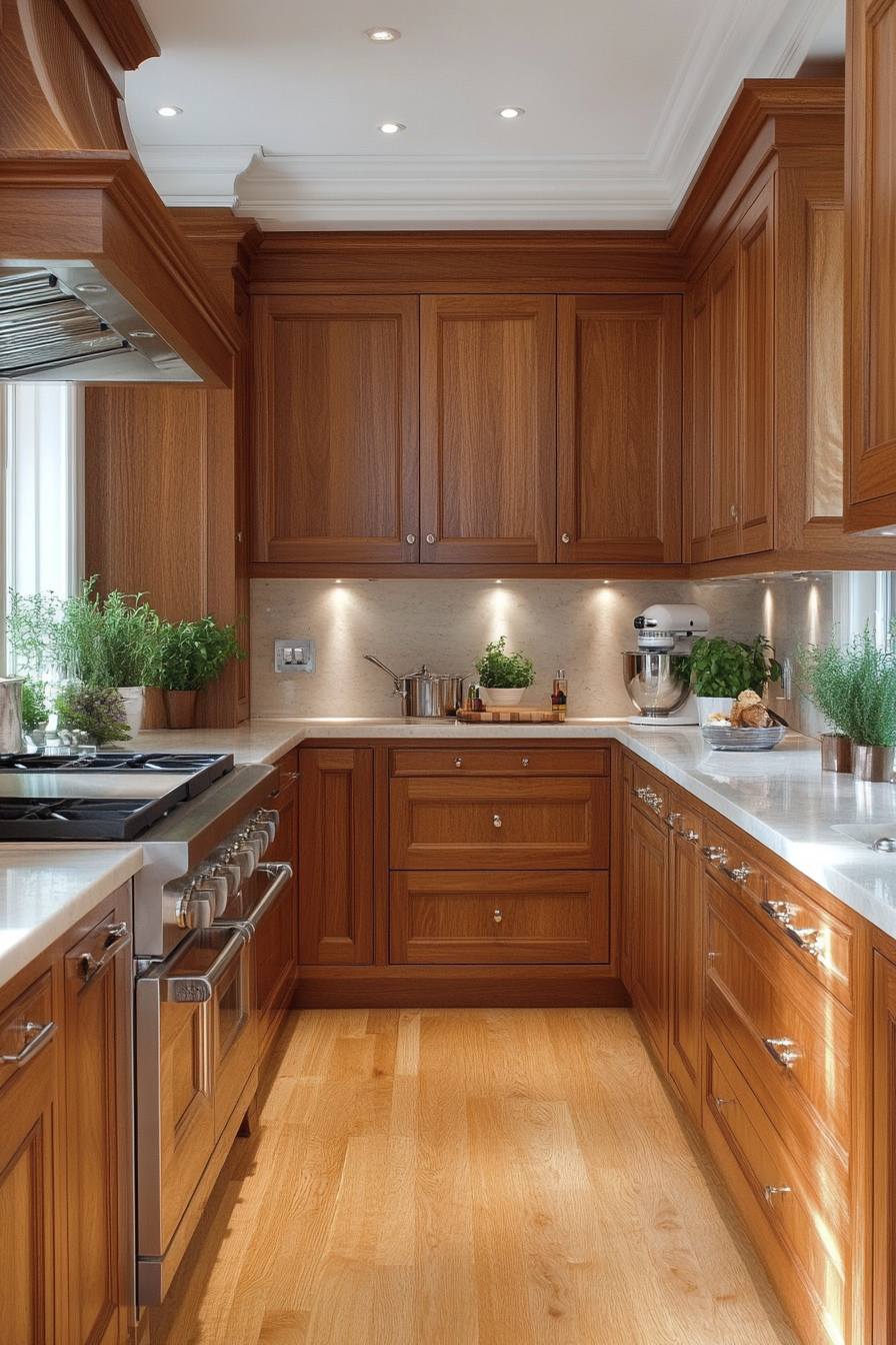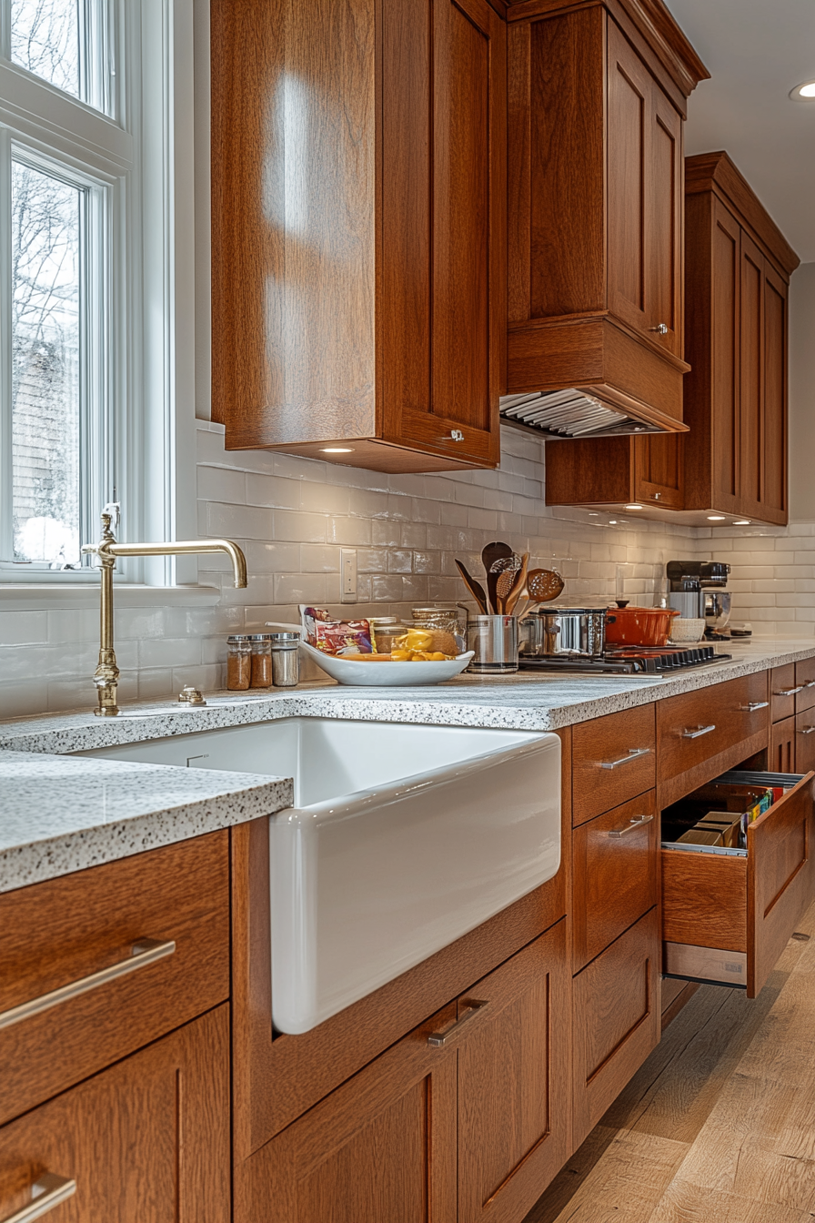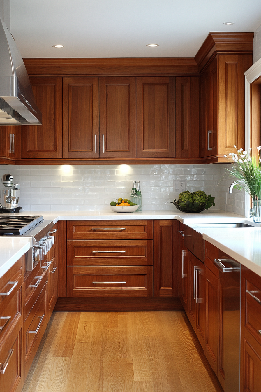 Imagine walking into a kitchen that whispers classic elegance. Cherry wood cabinets in a traditional setting? Pure magic.